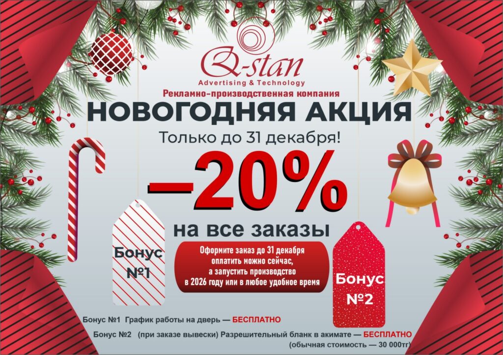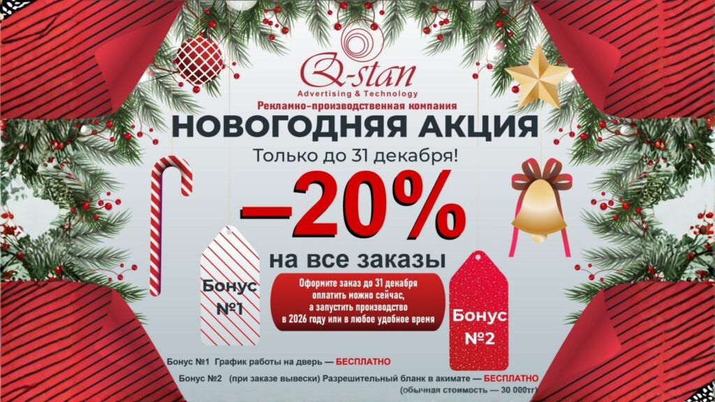 Рекламно-производственная компания Q-STAN работает на рынке Казахстана с 2020 года. Мы начинали с изготовления наружной рекламы и за несколько лет выросли в многопрофильное производство, которое закрывает все задачи бизнеса в сфере визуальных коммуникаций.